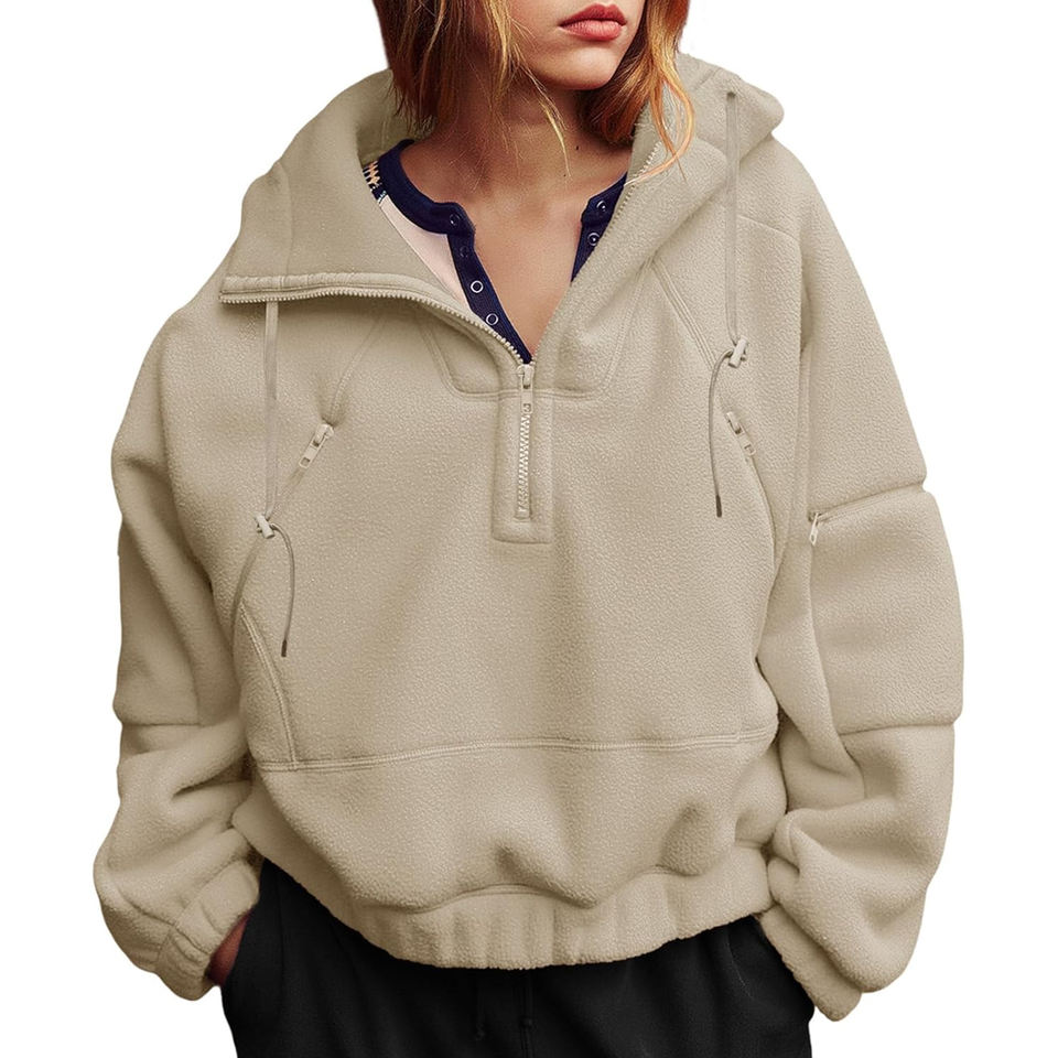 Pull à capuche femme surdimensionné à épaules tombantes de qualité supérieure personnaliser logo chaud coton polaire coupe ample quart fermeture éclair à capuche