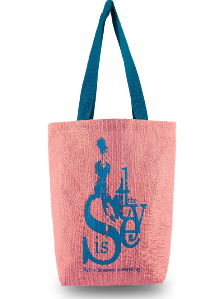 Sac fourre-tout en jute de qualité supérieure, bicolore, avec impression personnalisée, design élégant, poignée de 40 cm | Sacs de courses promotionnels réutilisables