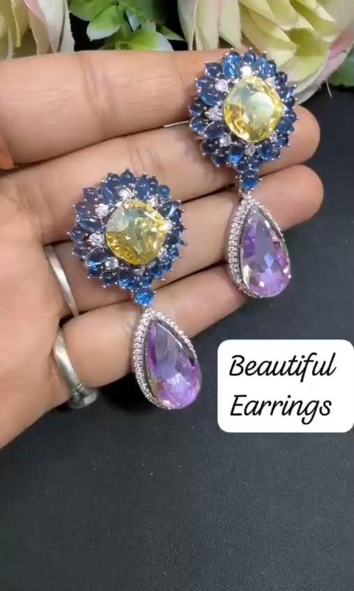 Boucles d'oreilles de qualité supérieure, design magnifique, luxe moderne, pierre scintillante de qualité supérieure, parfaites pour les soirées, légères et confortables