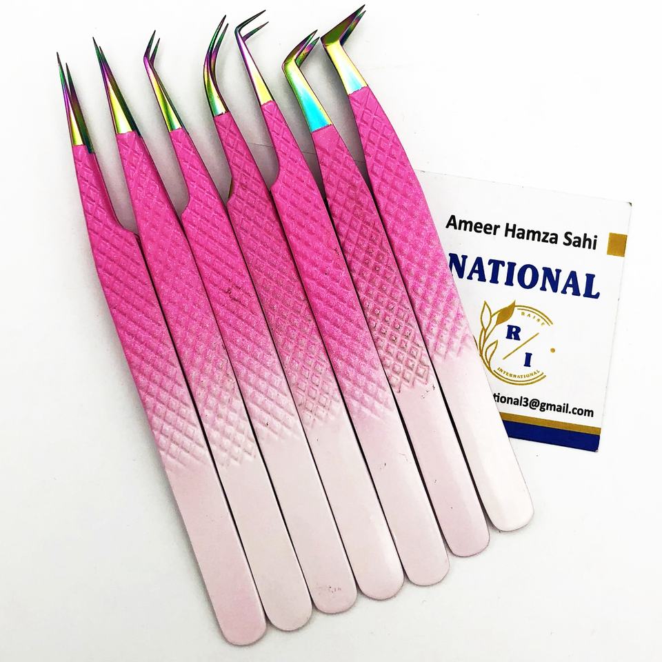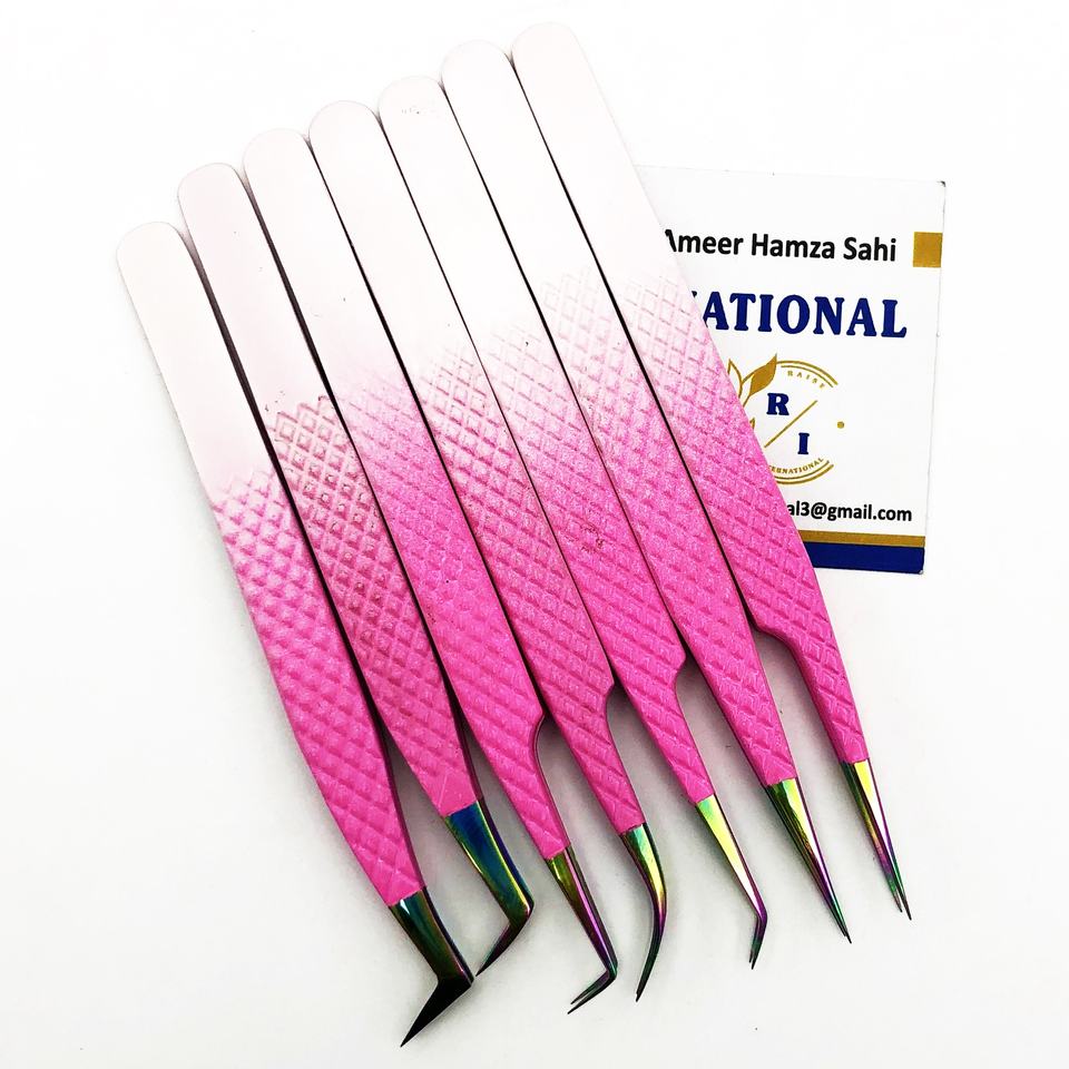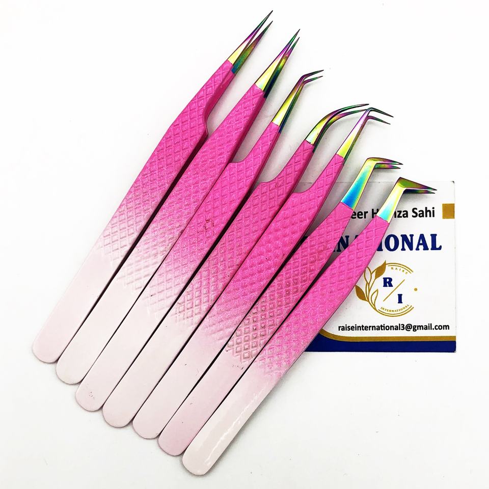 Pince à épiler en acier inoxydable de précision durable et écologique de qualité supérieure antistatique à pointe en fibre pointue rose Ombre