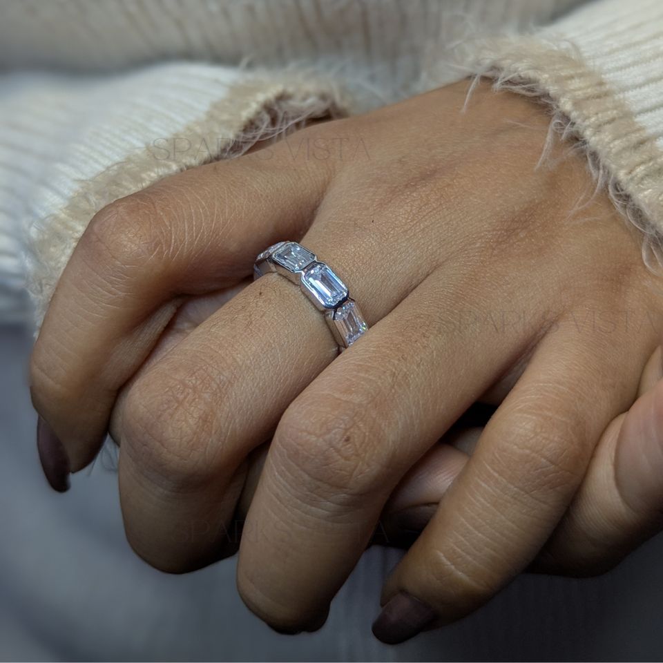 Bague d'anniversaire empilable en or 10K/14K/18K Ensemble de lunette de mariage éternité en diamant taille émeraude de qualité supérieure