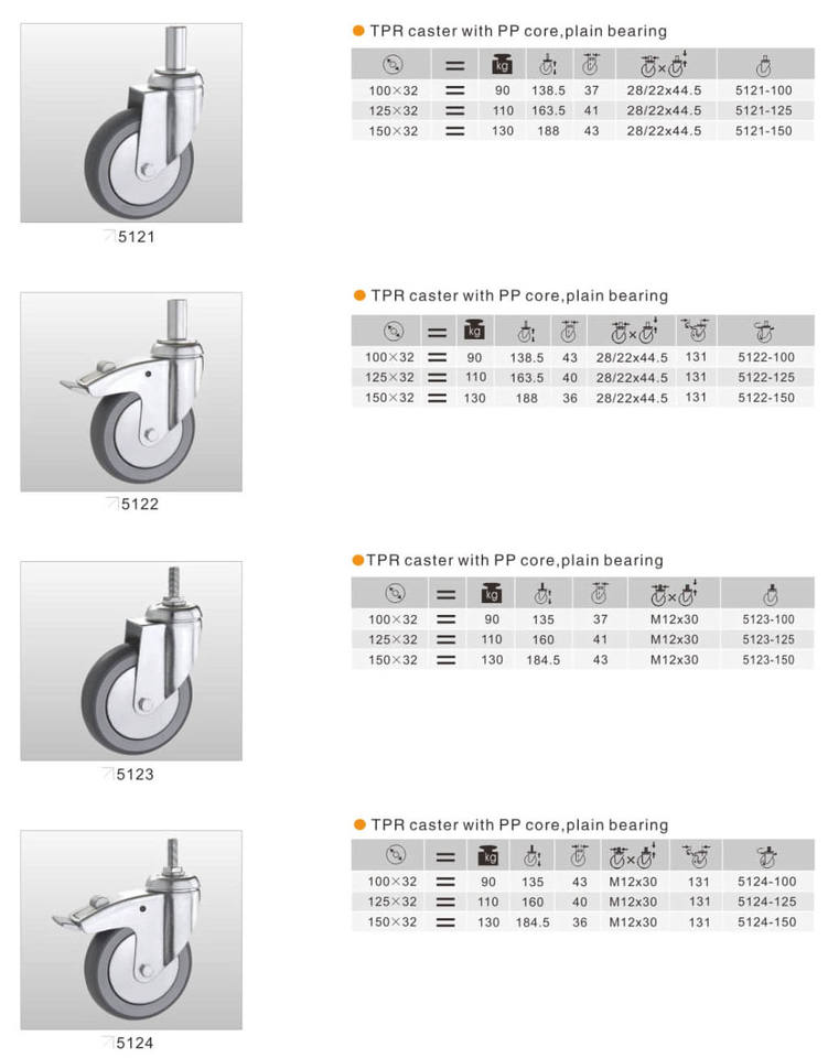 Roue européenne de qualité supérieure roulette TPR moyeu PP roulettes de meubles industriels à usage moyen 90kg-130kg capacité de charge
