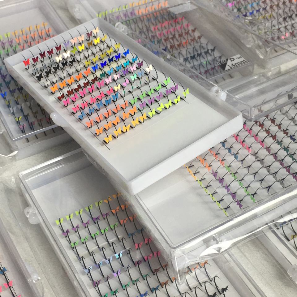 Extensions de cils en faux vison de qualité supérieure, faites à la main, longues et naturelles, boucles stables, papillon vert rose, diamant lumineux