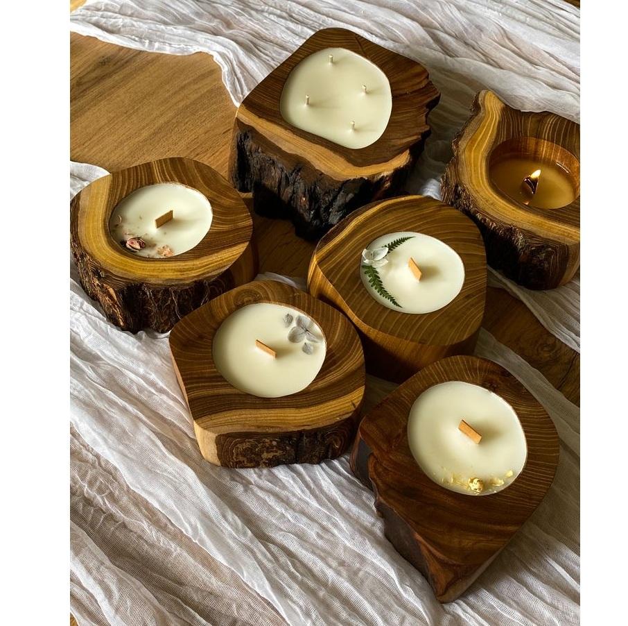 Bougies en bois brun naturel de qualité supérieure God Grace Craft, avec support et couvercles, fabriquées à la main pour la décoration de la maison, du bureau et de Noël