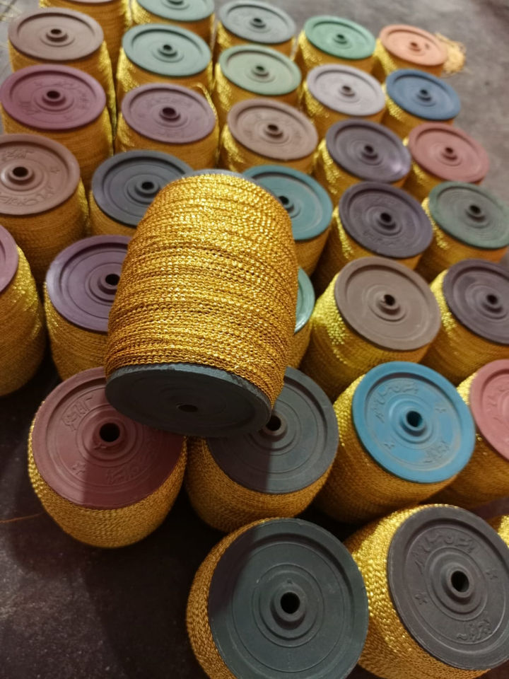 Fils Métalliques Dorés et Argentés de Qualité Supérieure 100% Coton, Franges et Pompons en Fil Bouillon Tricoté Durable pour Textiles de Maison et Sacs