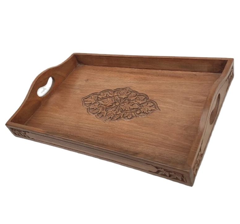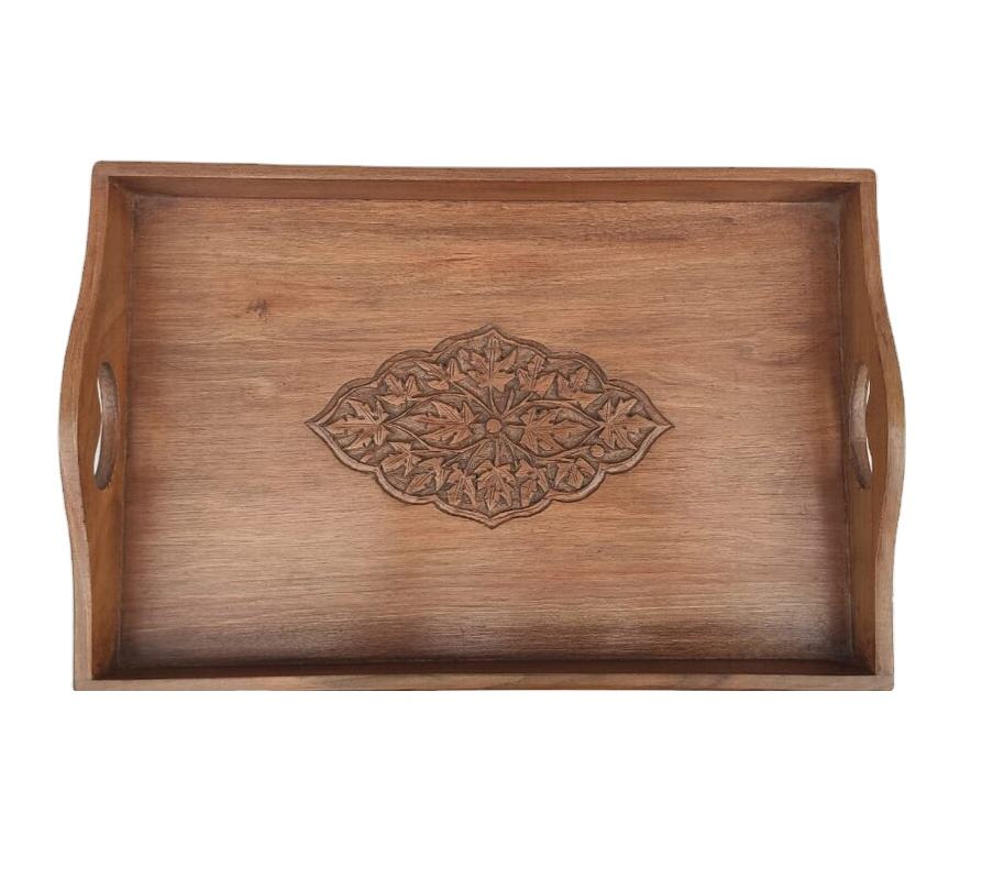 Plateau de service rectangulaire en bois de manguier de couleur naturelle Poignées de grande taille sculptées à la main de qualité supérieure, parfaites pour le restaurant à la maison