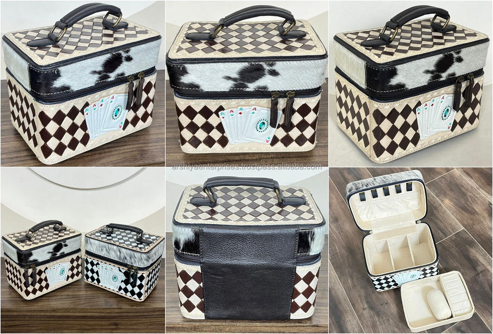 Product name:Hand Tooled Checkered Leather Large Jewelry Case