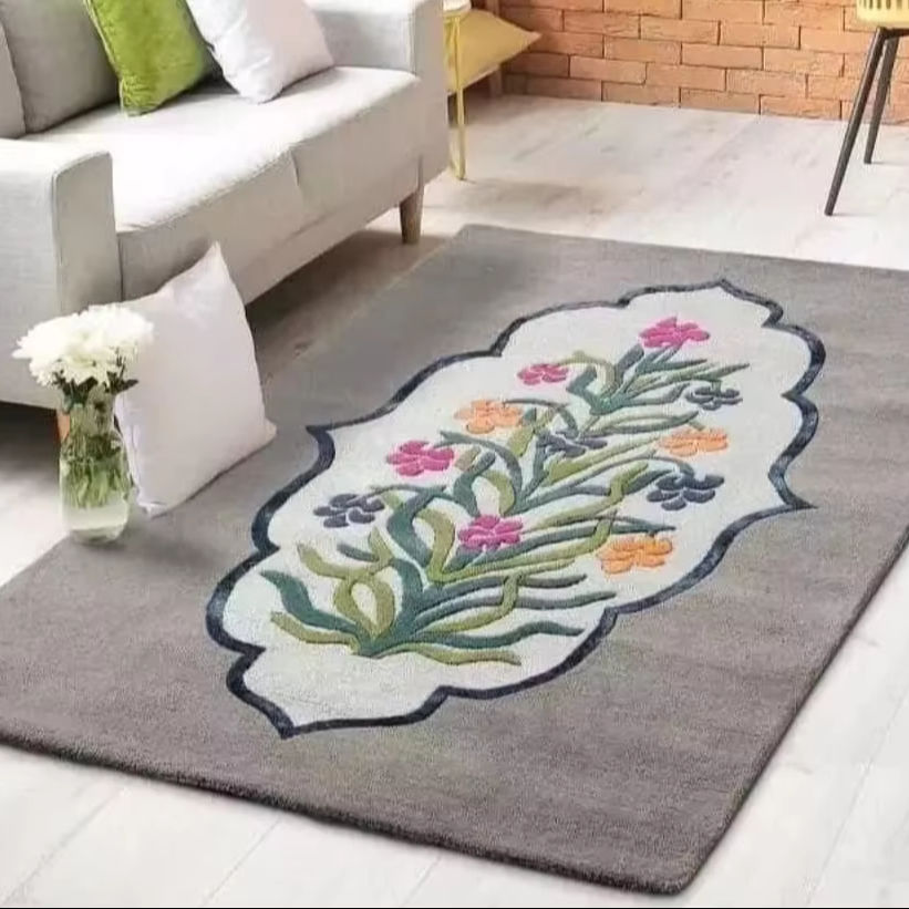 Tapis en laine de taille personnalisable de qualité supérieure touffeté à la main avec une pile haute nouveau design abstrait géométrique