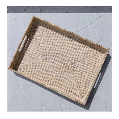 Plateau de service en rotin naturel de qualité supérieure, fabriqué à la main, avec poignées en bois, organisateur de cuisine durable en rotin pour plateaux décoratifs