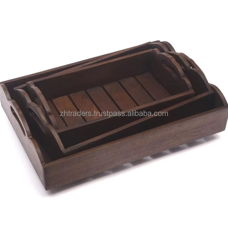 Premium Quality Handcrafted Wooden Serving Tray Made from Acacia Mango and Sheesham Wood for Coffee and Dining