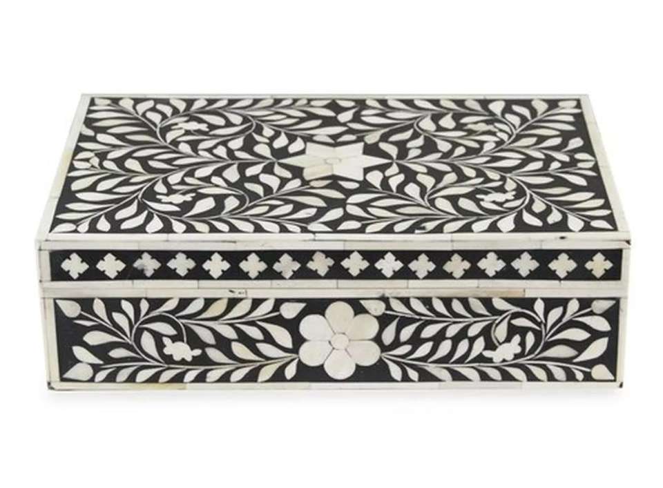 Boîte à bijoux rectangulaire de style arabe en incrustation d'os de qualité supérieure, fabrication artisanale, taille et logo personnalisés, fabricant indien