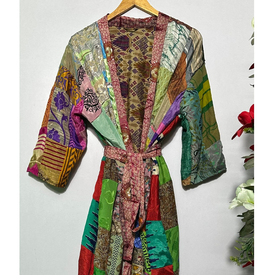 Nom du produit:Kimono en patchwork de soie fait main
