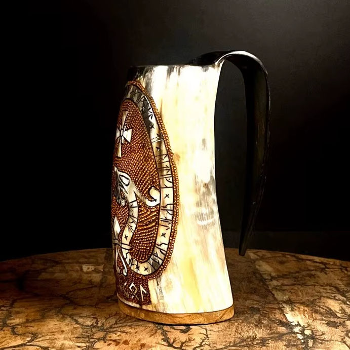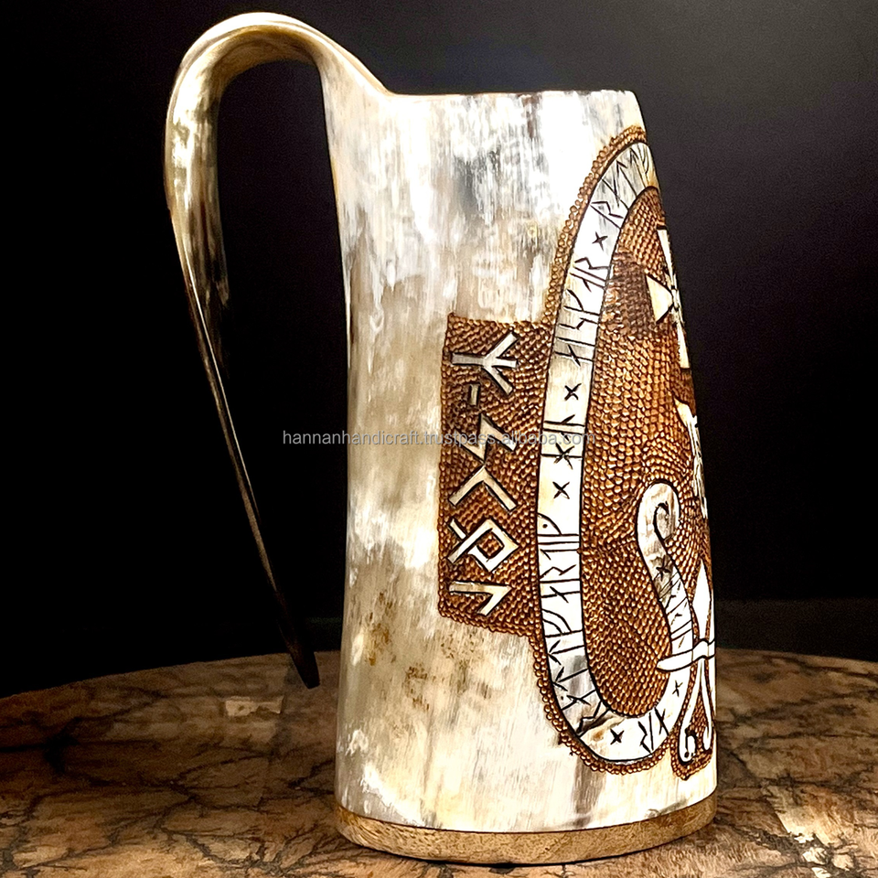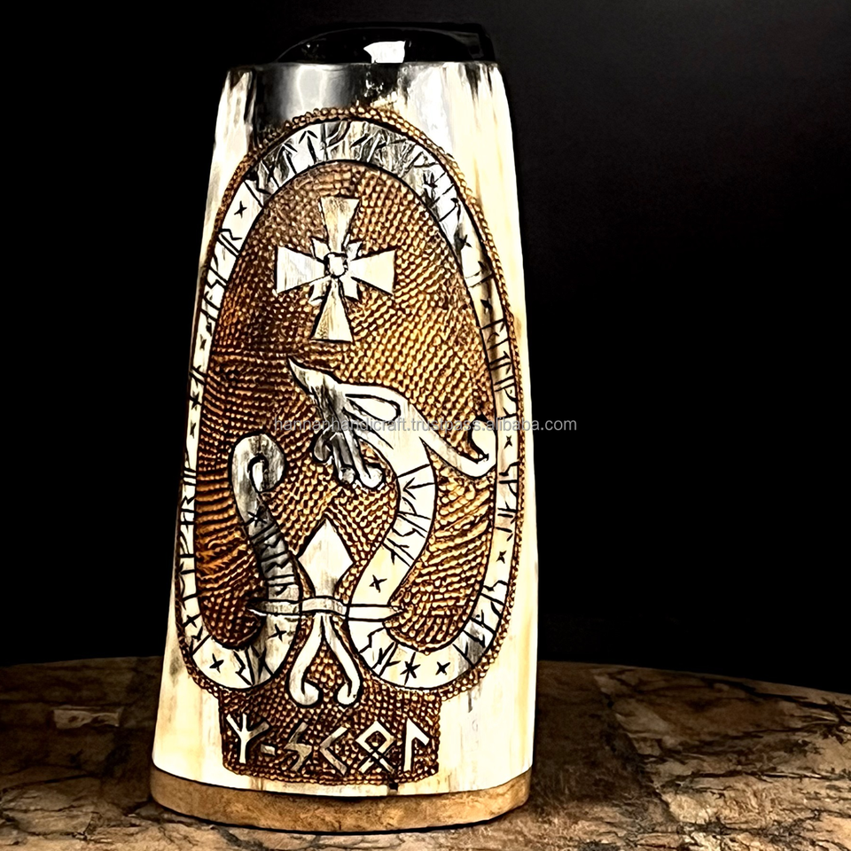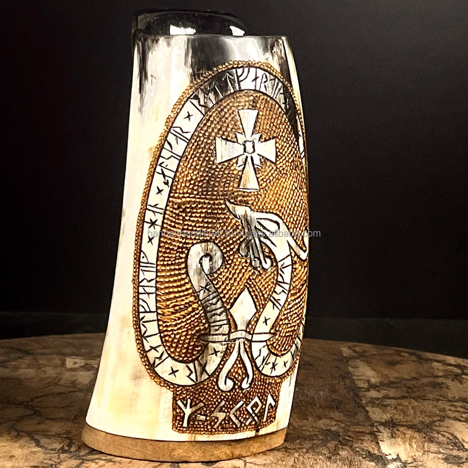 Mug à boire en corne de buffle véritable, fait main, de qualité supérieure, en matériau organique, toucher réel, poli, forme circulaire, pour festivals et mariages