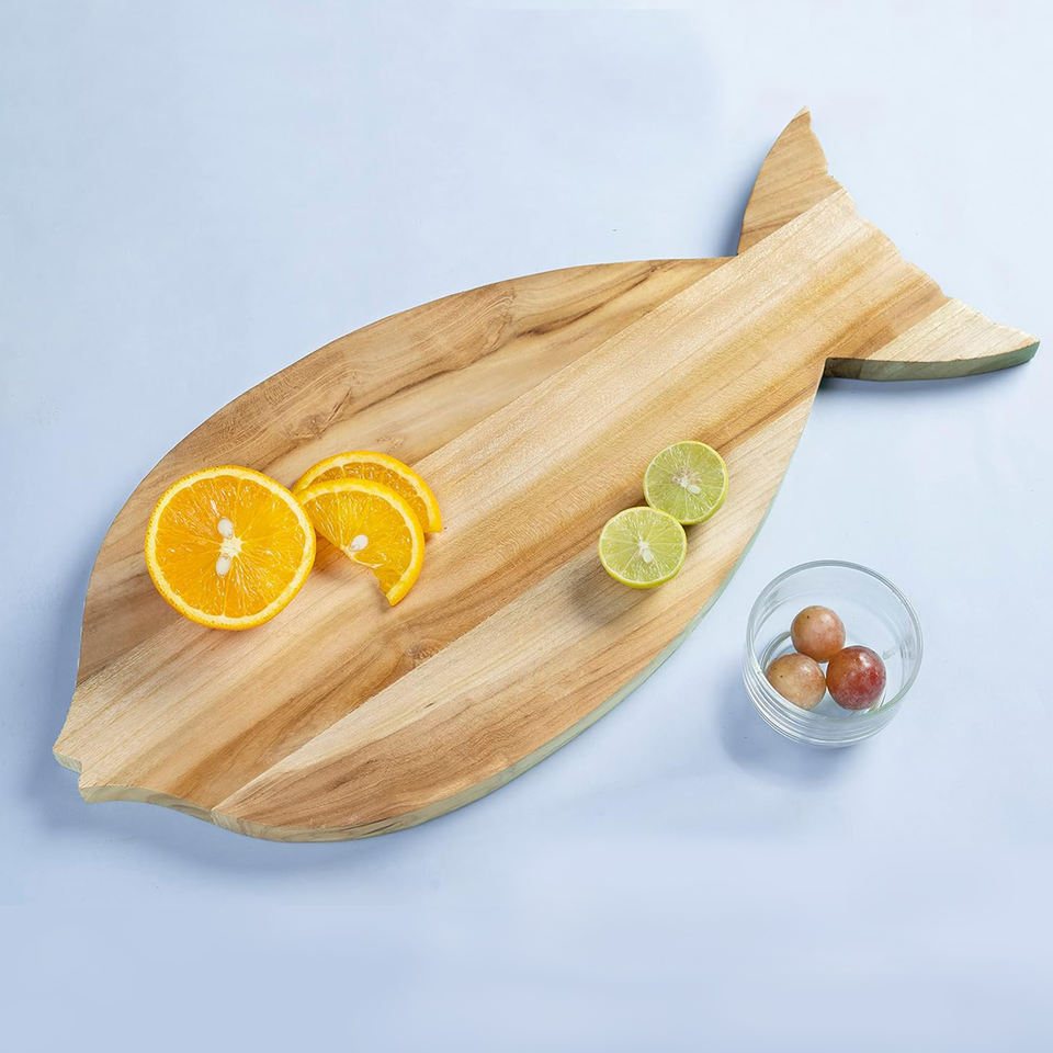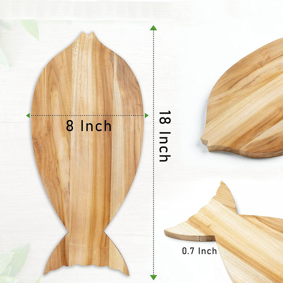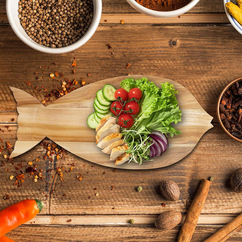 Planche de service à découper en forme de poisson en bois massif de qualité supérieure à la main réversible rectangulaire polyvalente 18x8