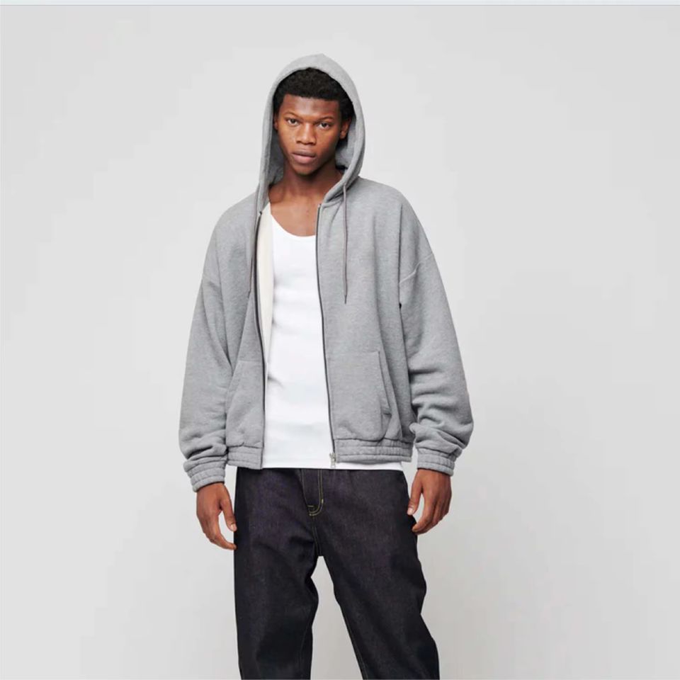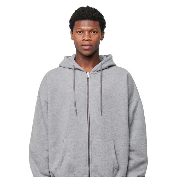 Qualité supérieure gris chiné sweats à capuche zippés 400GSM poids lourd français éponge polaire Patch Applique broderie fermeture éclair sweats à capuche hommes