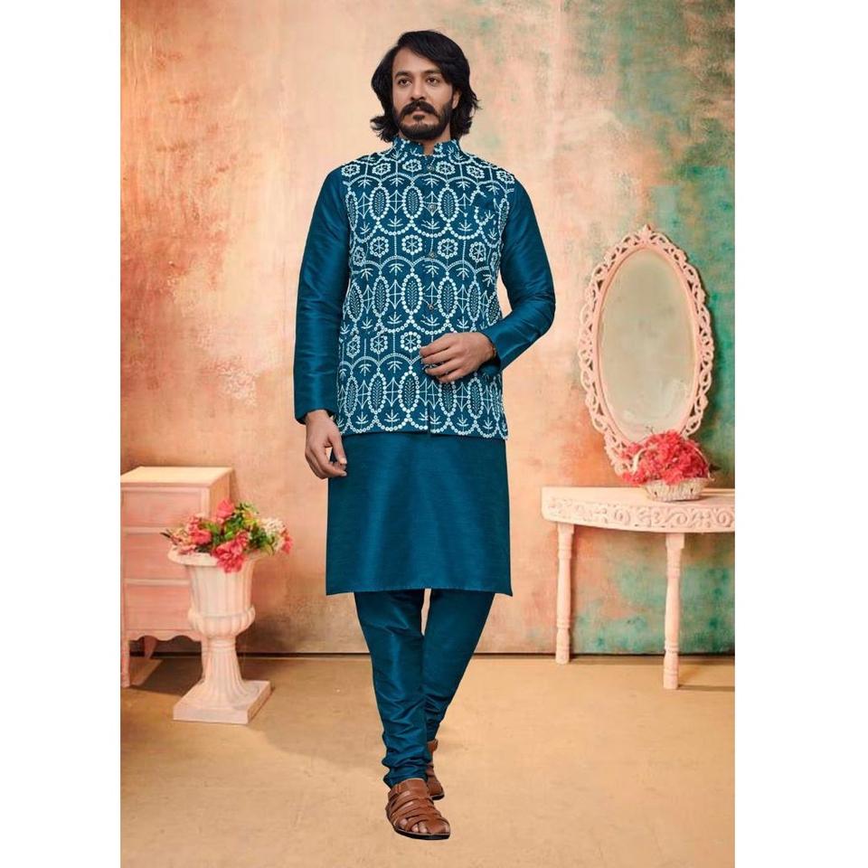 Qualité supérieure Lourd Designer Hommes Soie Kurta Pyjama Miroir Travail Koti Matériel pour les Fêtes de Mariage Indien et Pakistanais Vêtements