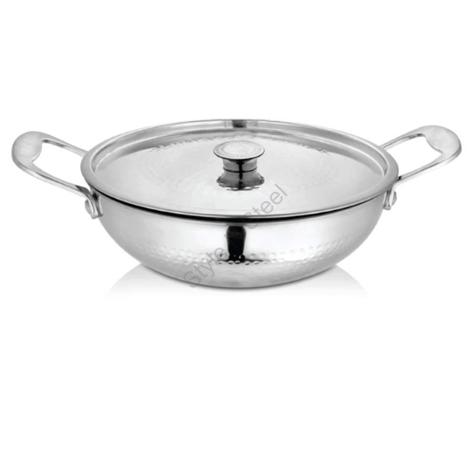 Product Name:Stainless steel heavy weight hammered kadhai with SS lid