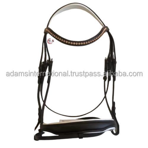 Bride de cheval en cuir haut de gamme de qualité supérieure avec muserolle et bandeau frontal Produit cheval essentiel