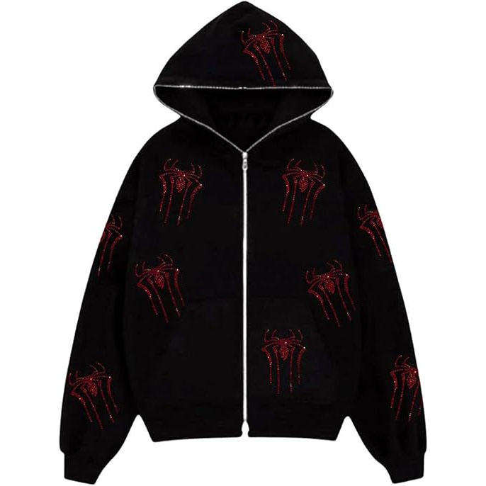 Premium Quality Hoodies Vintage Street Hoodies for Men and Women Spider Print Zipper Jacket Winter Hoodies