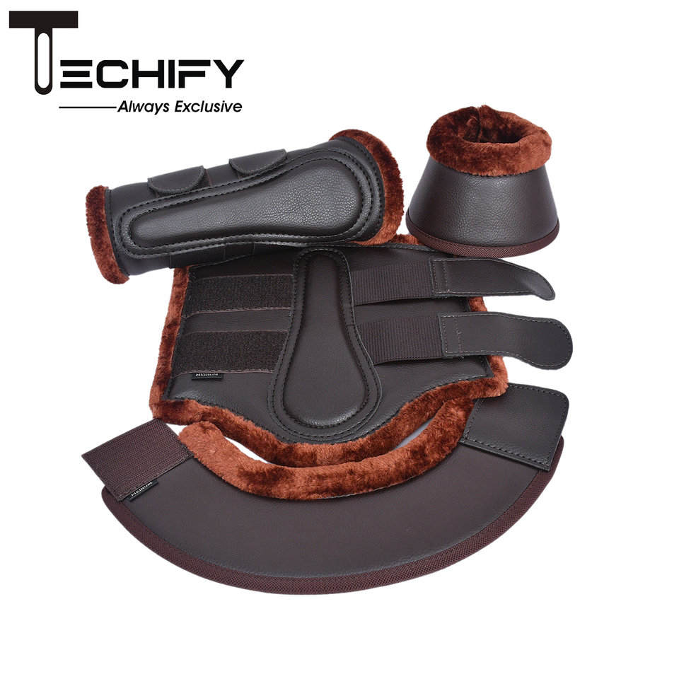 Ensemble de bottes mates en cuir de cheval de qualité supérieure avec doublure en fausse fourrure de mouton bottes de protection tendon pour chevaux