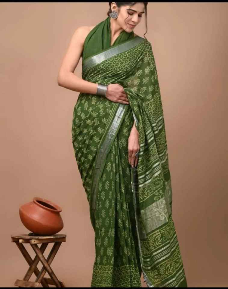 Premium Quality Indian Traditional Wear Banarasi Silk Saree for Women Soft Chanderi Cotton Digital Print Woven Border