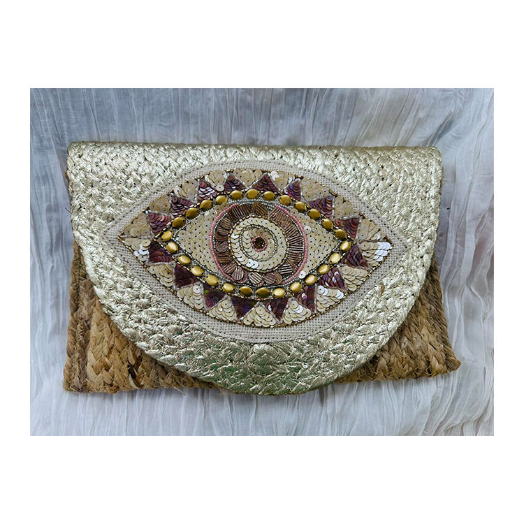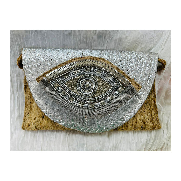 Premium Quality Jute Handmade Clutch Bag with Beading Shell Tassel m From India for Women Fashion Available From India