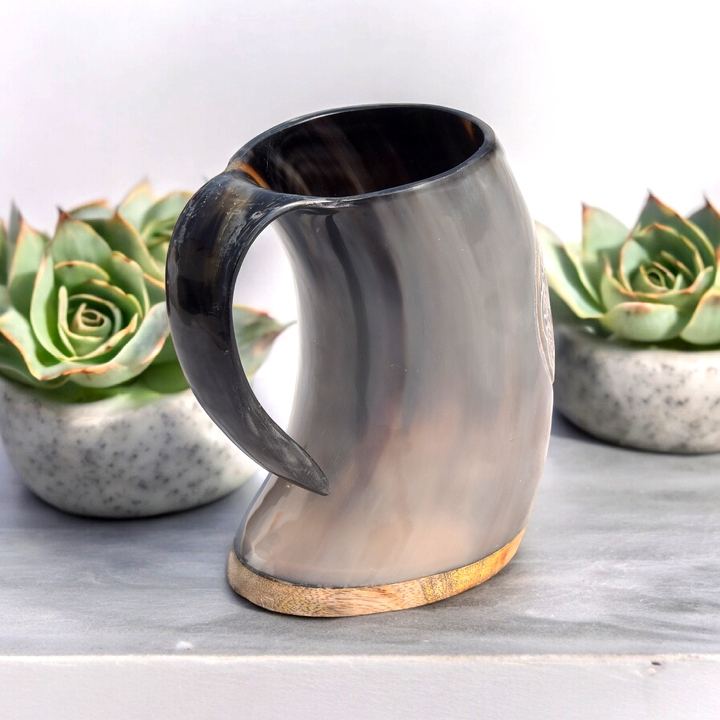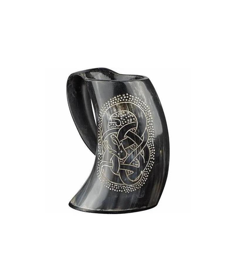 Mug à bière en corne de buffle de qualité supérieure, gravé au laser, avec une poignée robuste, cadeau artisanal, mugs en corne faits à la main pour boire de la bière