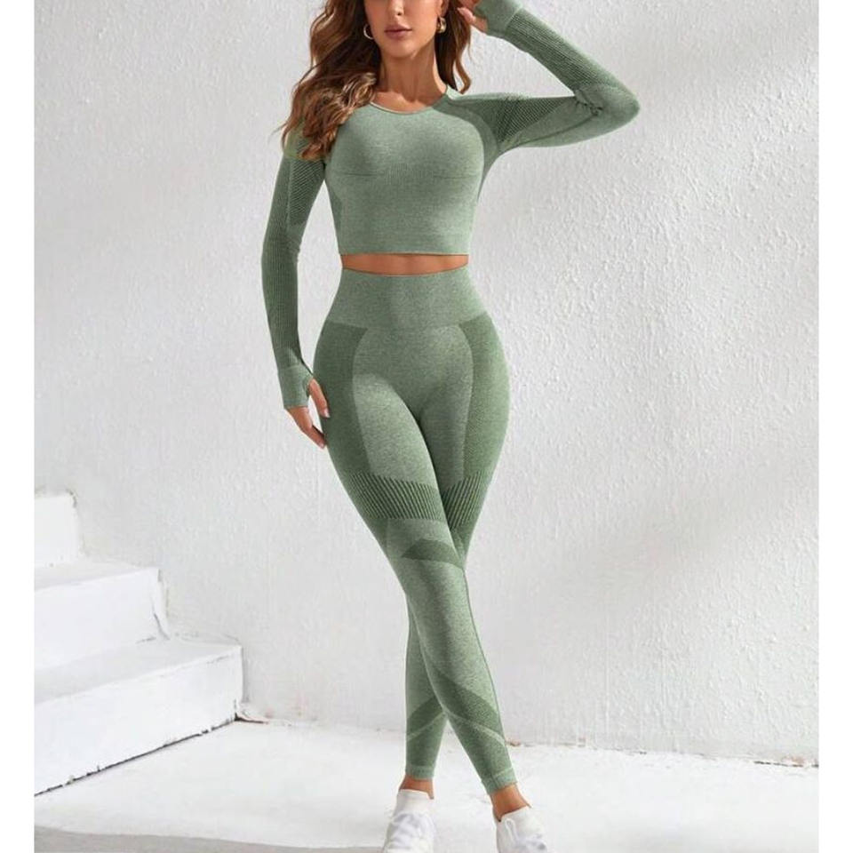 Qualité supérieure Dernière conception Logo personnalisé Vêtements de yoga respirants pour femmes Haut à manches longues Ensemble de yoga sans couture à vendre