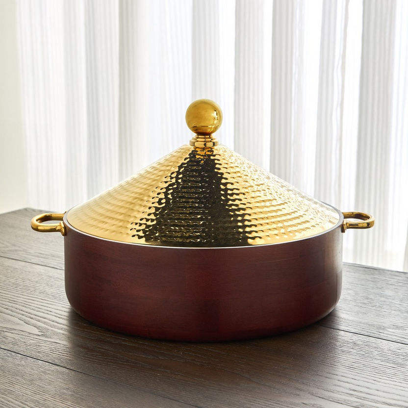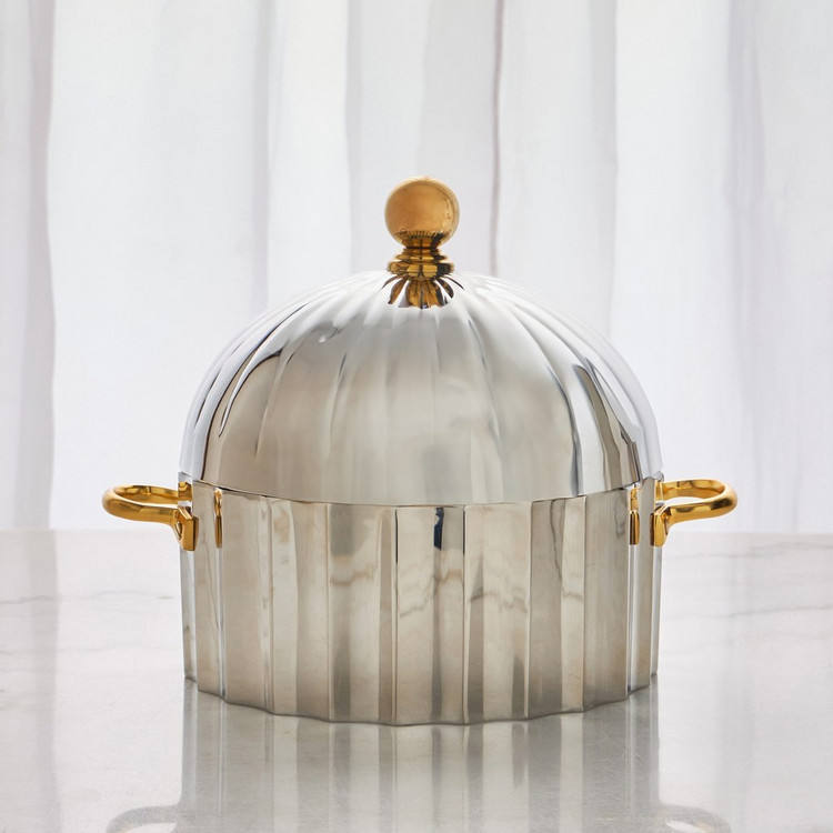 Étui isotherme en cuir et métal de qualité supérieure avec couvercle hermétique qui assure que les aliments restent chauds et savoureux, parfait pour les pique-niques et les événements en plein air