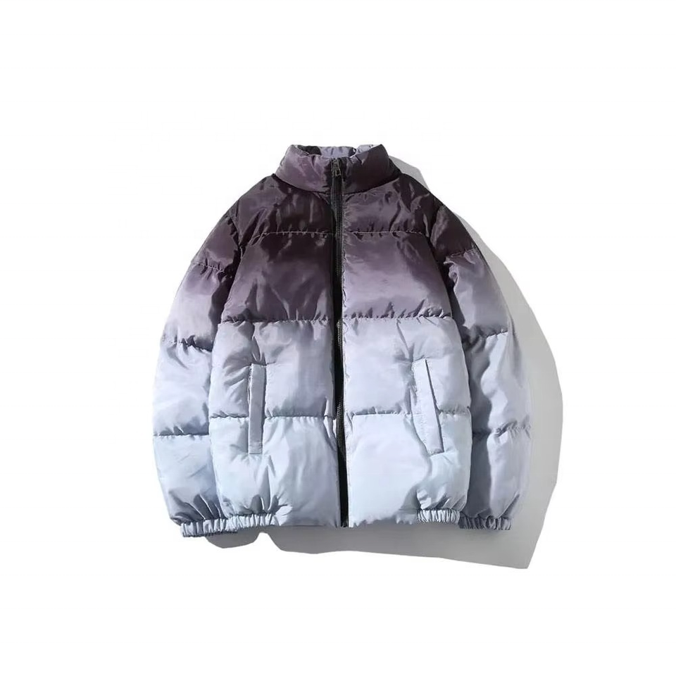 Qualité supérieure coupe ample partout Dip Dye dégradé imprimé hommes hiver chaud doudoune personnalisée en différentes couleurs