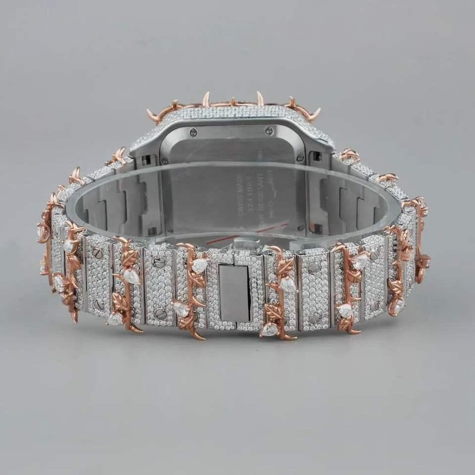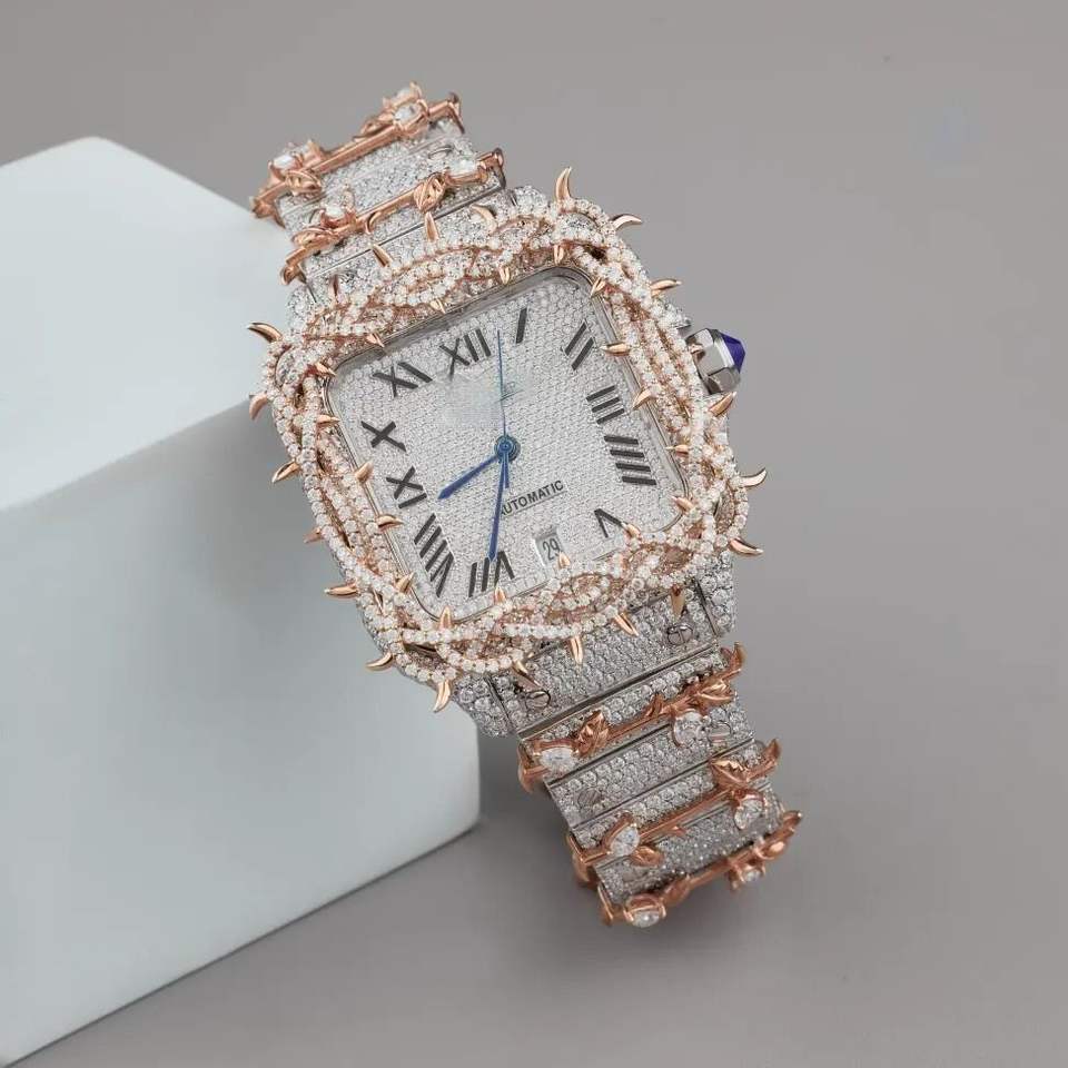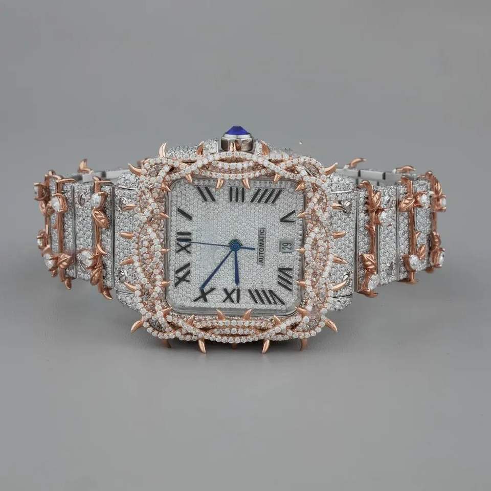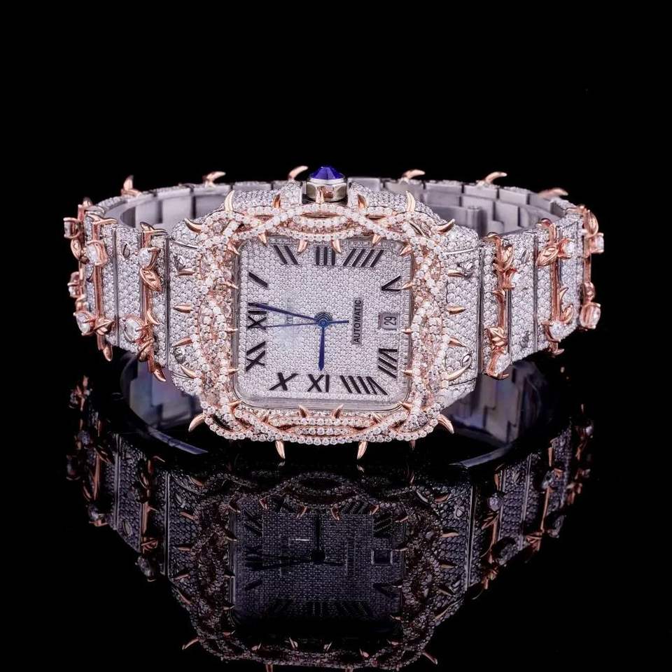 Montre de luxe de qualité supérieure avec diamant glacé en or et acier inoxydable pour hommes et femmes disponible au prix d'exportation
