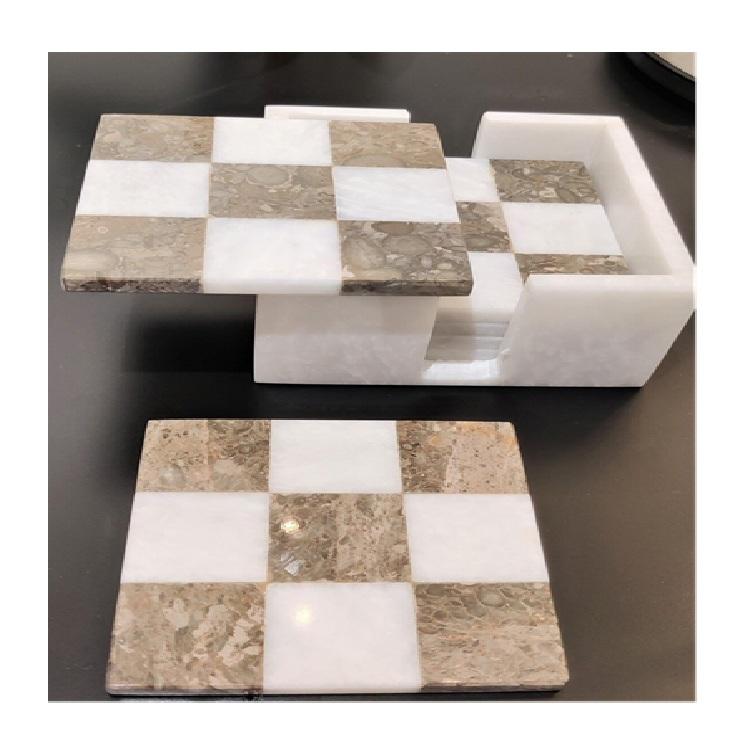 Sous-verres de vin de café de thé en marbre de qualité supérieure avec support ensemble 4 pièces pour boissons et tapis de café et tampons sous-verres de Table pour boissons