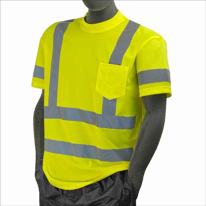 T-shirts haute visibilité pour hommes de qualité supérieure, 100 % coton, bande réfléchissante, vert lime, manches courtes, séchage rapide, tissu en maille respirant, imperméable