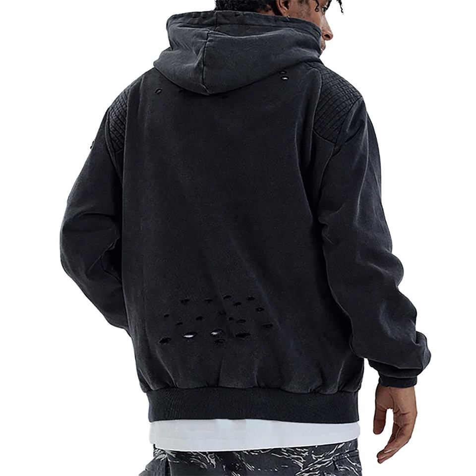 Sweat à capuche zippé pour hommes de qualité supérieure coton mélangé en détresse lavé à l'acide Style d'hiver Vintage épaule tombante surdimensionnée