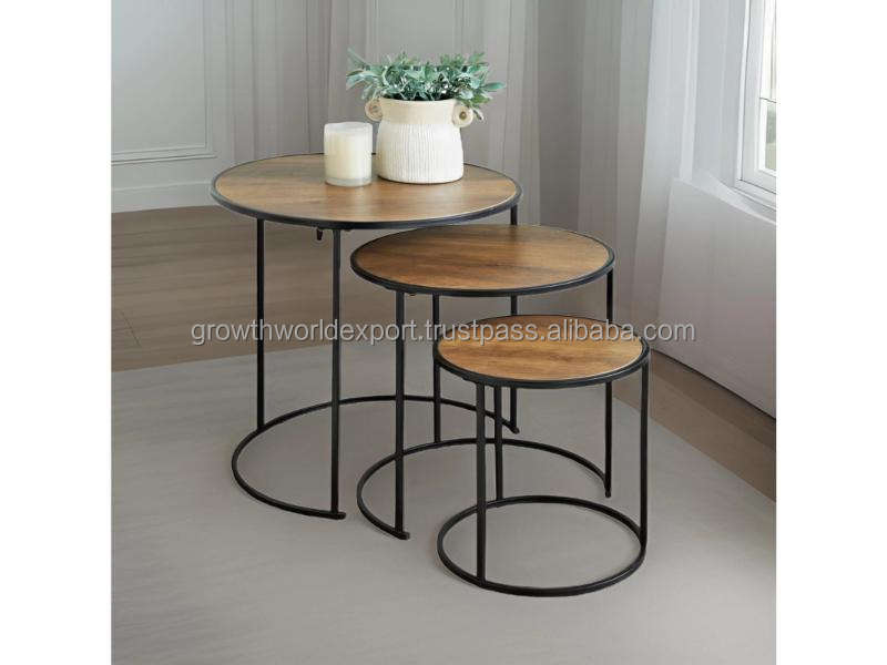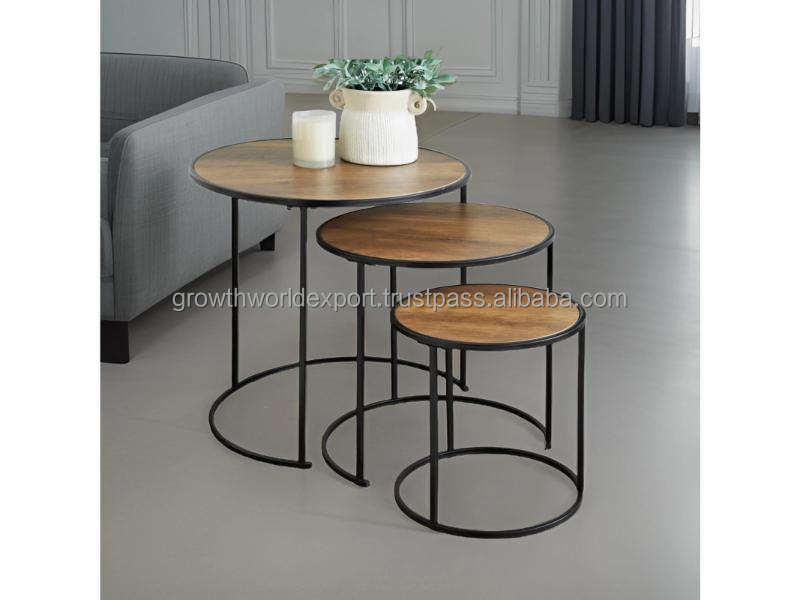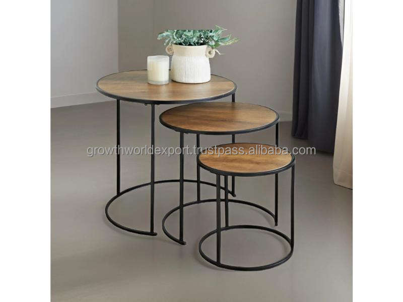 Table basse de qualité supérieure avec structure en métal et plateau en bois | Table de centre industrielle | Table basse moderne pour salon