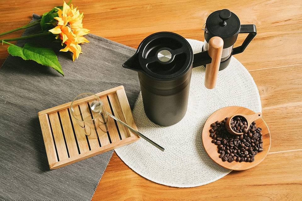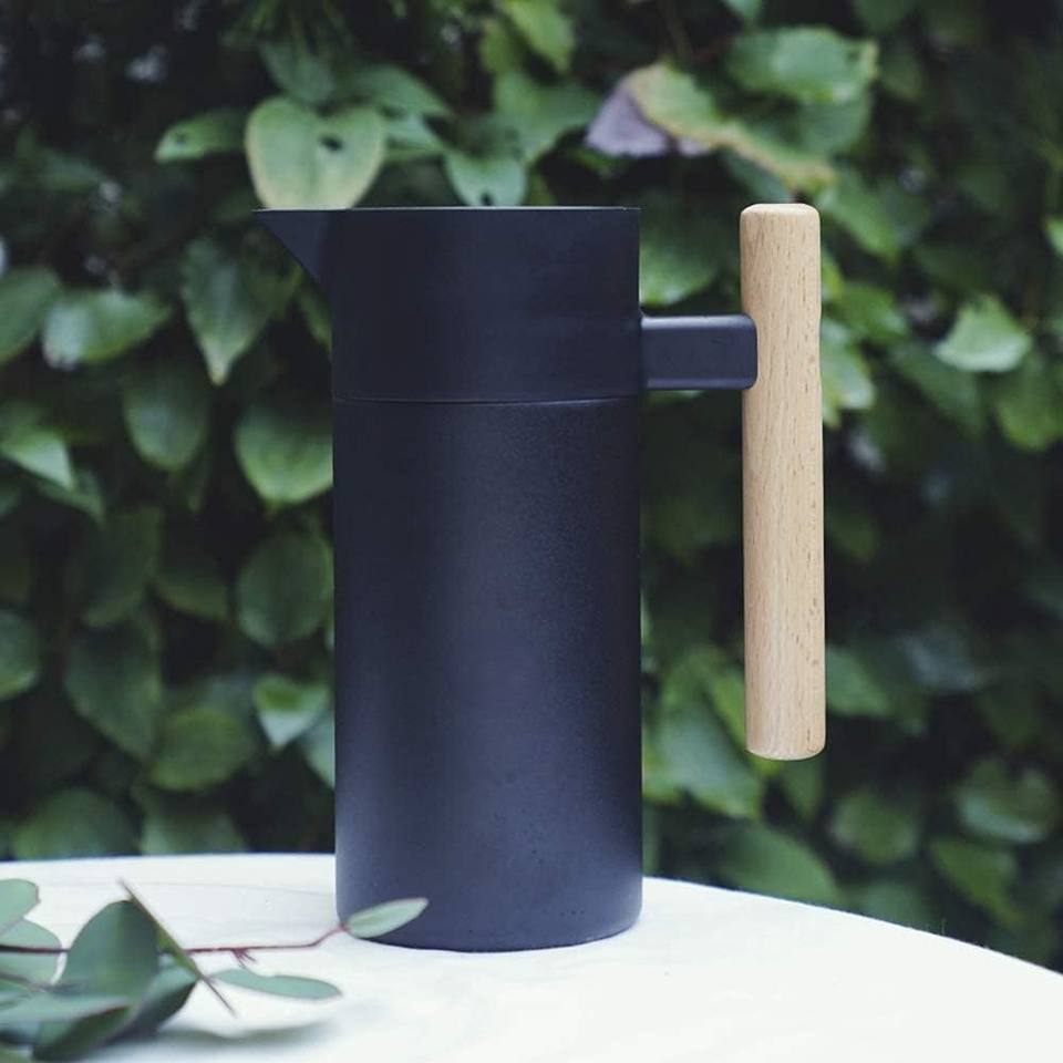 Pichet en acier inoxydable au design moderne de qualité supérieure avec couvercle étanche Pichet à manche en bois pour usage quotidien et boissons froides