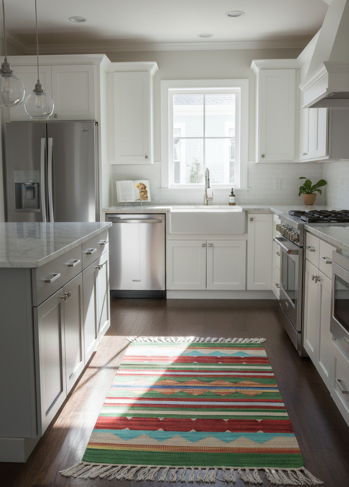 Tapis/chemin de table en coton tissé à la main, motif floral, qualité supérieure, moderne, lavable en machine, réversible, épaisseur personnalisable, pour l'extérieur et la maison