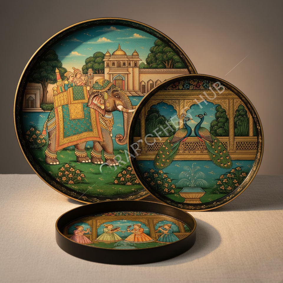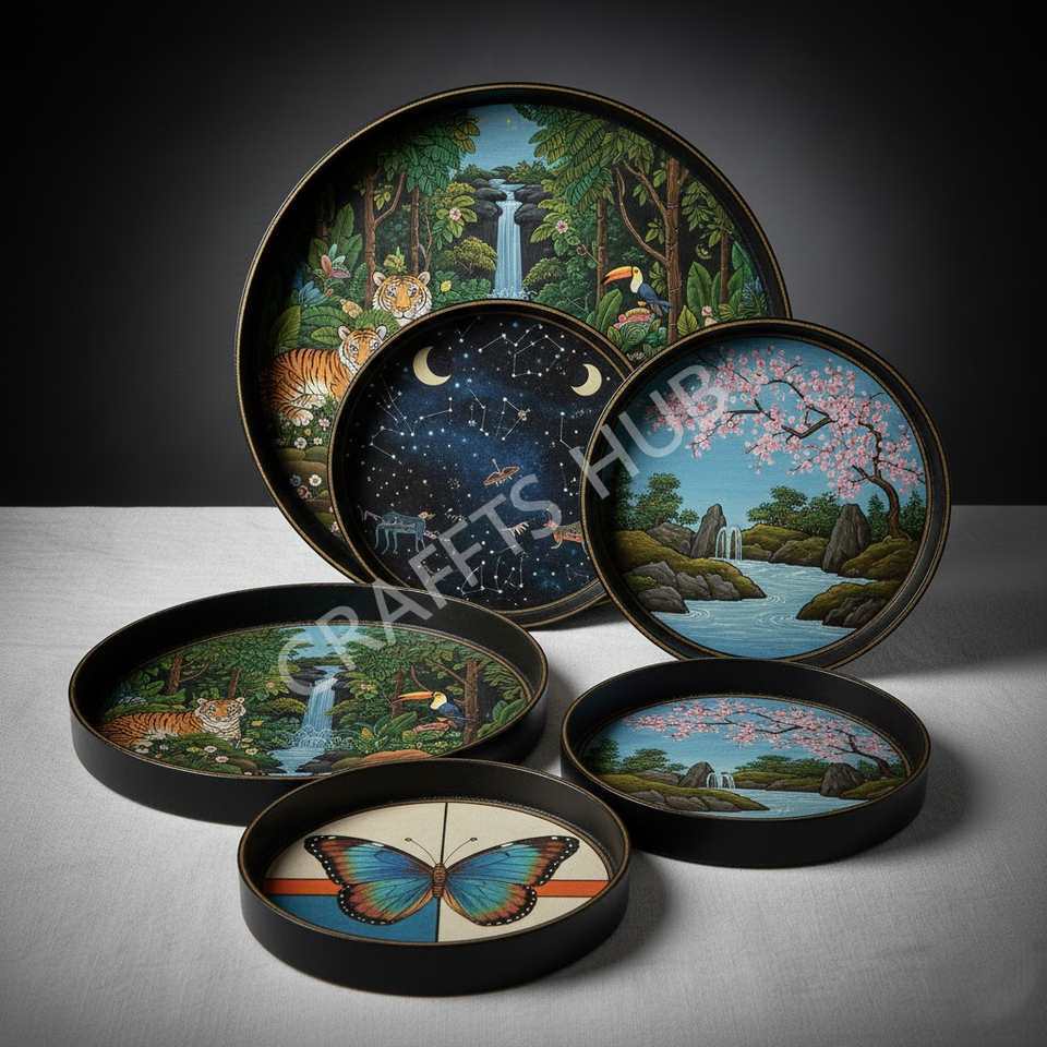 Ensemble de plateaux de service en bois MDF multicolores de qualité supérieure plateau décoratif pour thé café grand plateau à café Premium