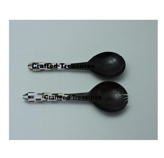 Serveur à salade en corne naturelle de qualité supérieure avec un design brûlant attrayant sur la poignée ustensiles de cuisine outils de mélange de salade au meilleur prix