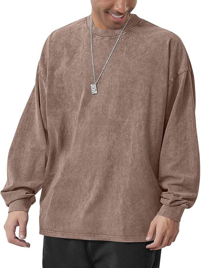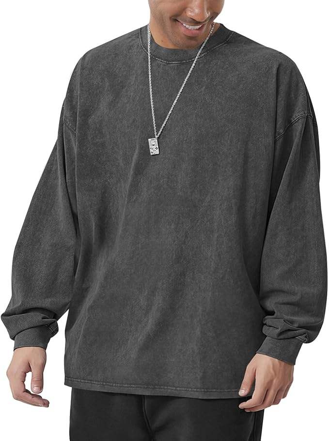T-shirts en coton surdimensionnés pour hommes de qualité supérieure, col rond, coupe vintage, manches longues, décontractés, pour la gym et l'entraînement
