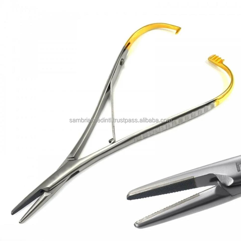 Instruments chirurgicaux orthodontiques de qualité supérieure porte-aiguille Mathieu dentaire TC 14cm plaqué or certifié CE alimentation manuelle