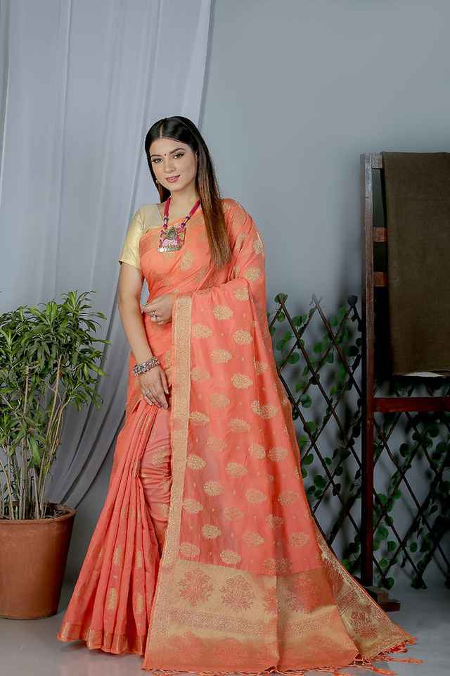Type:Traditionnel Chanderi Soie Avec Large Bordure Et Riche Pallu