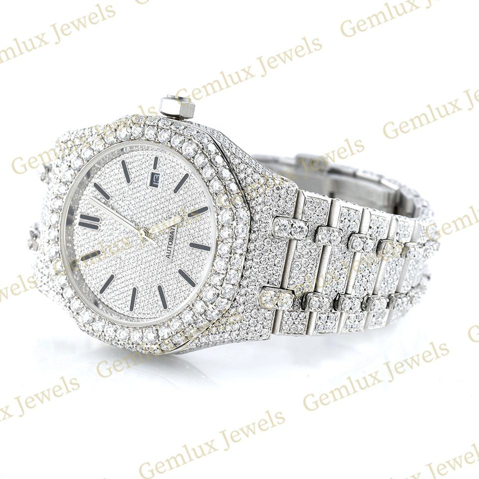 Qualité supérieure Testeur de diamants Mouvement automatique Date automatique D VVS Entièrement glacé Moissanite Diamant Hip Hop Montre pour hommes