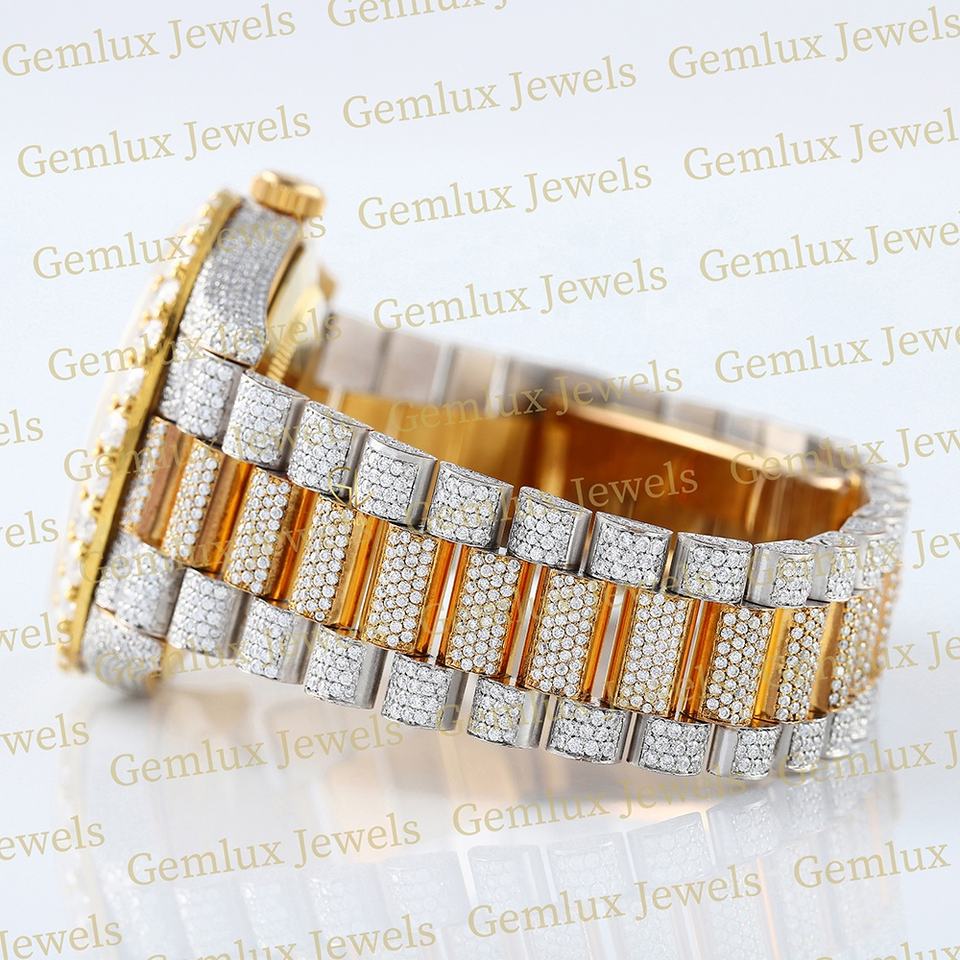 Testeur de diamants de qualité supérieure deux tons cadran vert cadran romain D VVS entièrement glacé Moissanite diamant montre Hip Hop pour hommes