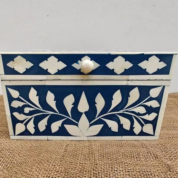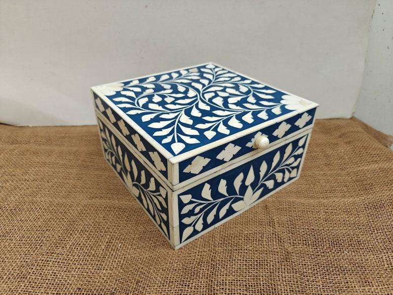 Boîte à bijoux en incrustation d'os bleu parfait de qualité supérieure paquet de bijoux boîtes à bagues personnalisées boîte à bijoux PAR HF CRAFTS