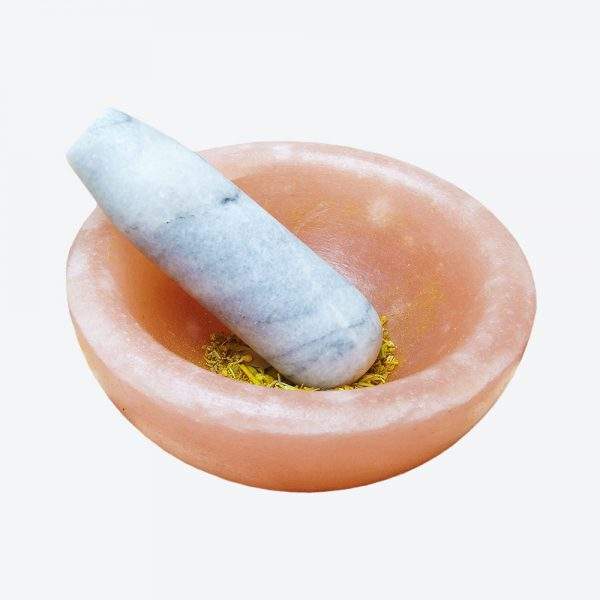 Premium Quality Pink Himalayan Salt Mortar Pestle Ivory Flower Style Natural Crafts for Wholesome Rock Salt Manufacturing Anwar