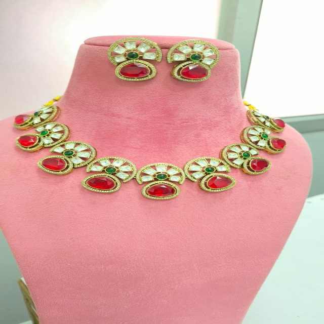 Collier Polki de qualité supérieure avec de magnifiques boucles d'oreilles, ensemble de collier minimaliste qui s'intègre parfaitement aux tenues traditionnelles et occidentales
