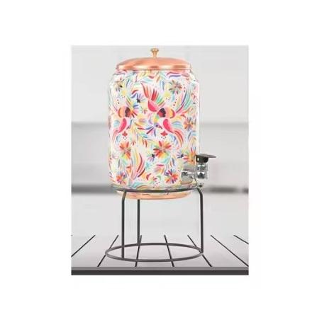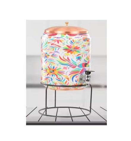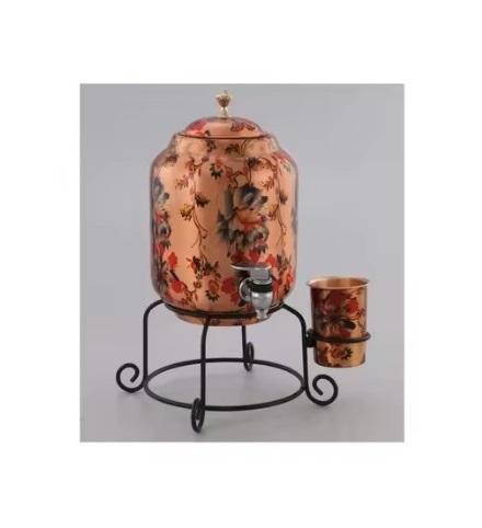 Distributeur d'eau en cuivre pur de qualité supérieure, imprimé exquis, pour la consommation quotidienne, la santé ayurvédique et le stockage de l'eau