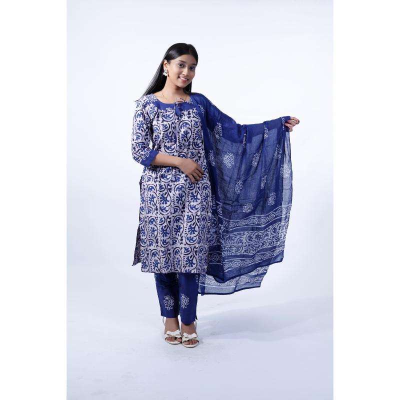 Ensemble complet en pur coton de qualité supérieure à imprimé batik avec vêtements ethniques doux et respirants Dupatta pour femmes d'Inde