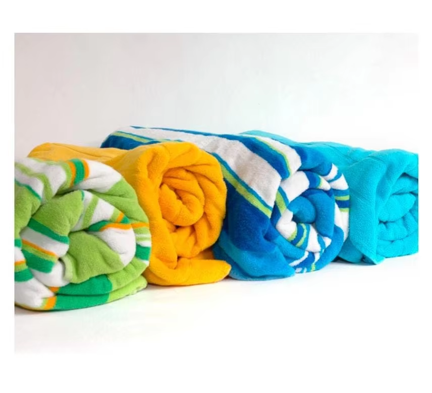 Serviette de piscine en coton à séchage rapide de qualité supérieure avec un look rayé moderne de luxe pour le golf, la plage et les hôtels d'Inde